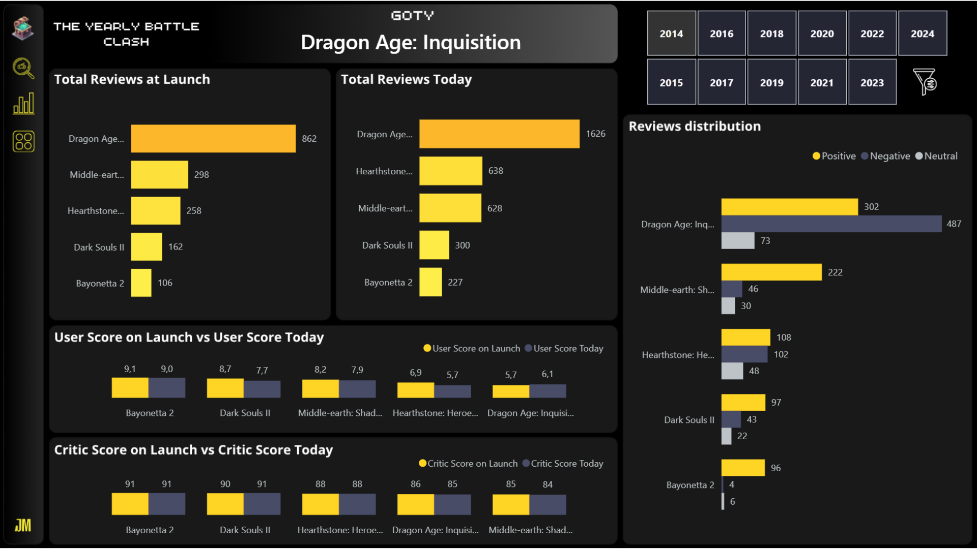 Este projeto analisa cada GOTY e seus concorrentes através de milhares de avaliações — todas recolhidas do ano exato em que os jogos foram lançados.
